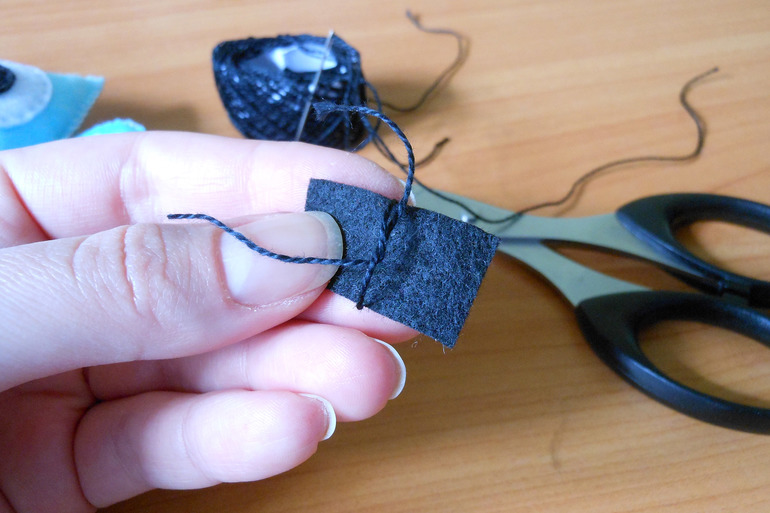 Анна, добрый день! В посте есть фото как пришить. Сшивается все вместе в четыре слоя, петелька затягивается на лицевой стороне игрушки.