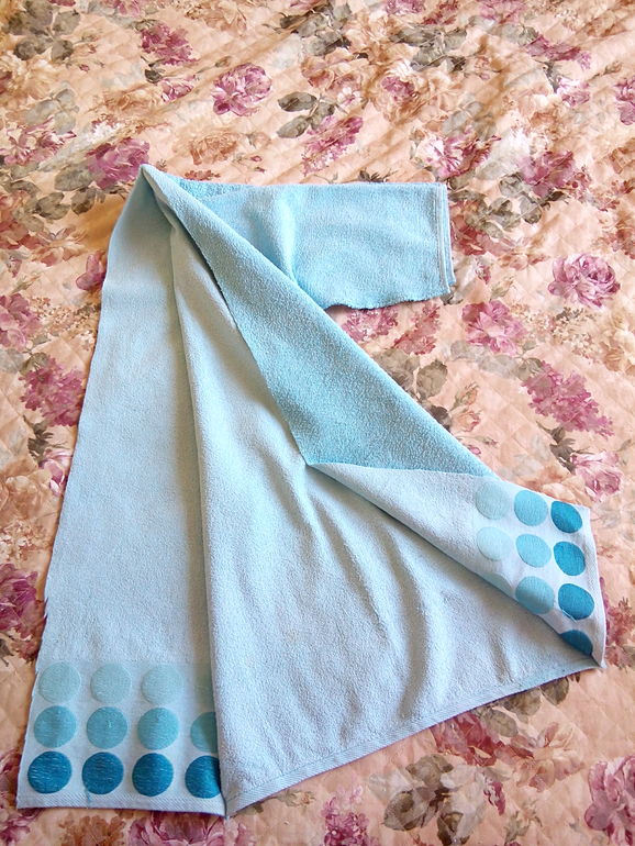 Полотенце большое 88х148см. Размерчик на девочку 2,5лет. Ширина от сгиба по линии талии 21см, т.е. в развороте длина талии халата 84см, отсюда будут минусоваться швы.