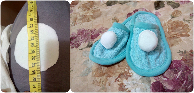 На ножке отмерить размеры верха тапочки с припусками, приложить к тапочке, обрезать по размеру.
