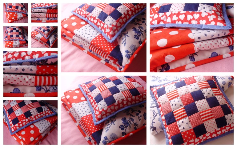 Давно хотела попробовать пэчворк, ведь он так симпатично и уютно выглядит. Но ведь понимала, что это творчество не для всех. Но любопытство победило, к тому же было давнее желание избавиться от лоскутков (выбросить то и в голову не приходило). Вот и сделала дочке наборчик для пикника. Одеялко ещё не стегано,т.к. буду это делать вручную, а наволочка простегана на машинке (и результат меня не впечатлил).