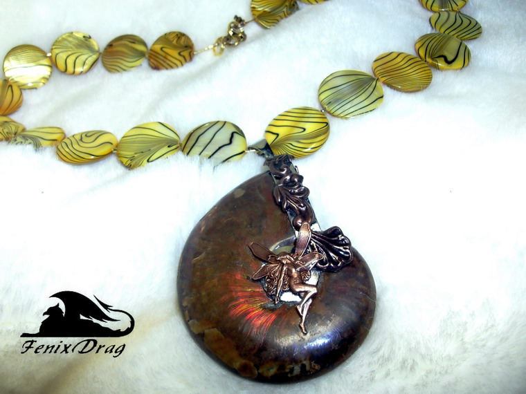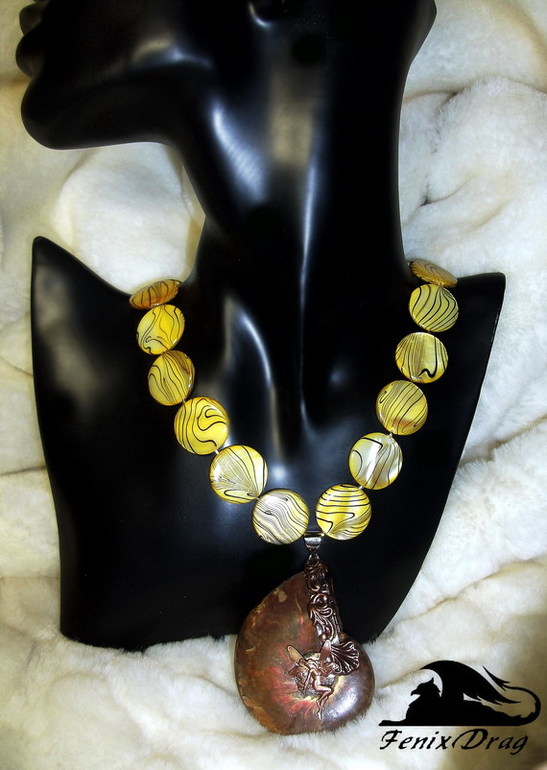 Мое новое колье с аммонитом и желтым перламутром