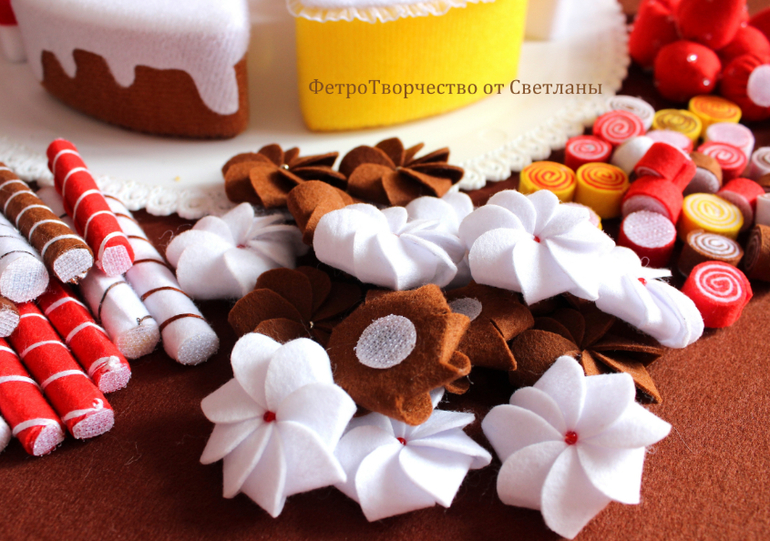 А на кусочках торта велкроткань -это ткань замечательно удерживает детали с жесткой стороной липучки в вертикальном положении и даже вверх тормашками .
