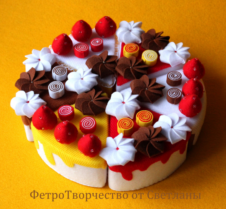 Конечно пользуйтесь :)Основа — поролоновый диск ( купила в Кореи ) .Нарезала его на 6 частей и обшила и обклеила фетром и велкротканью. А детали все, за исключением ягодок ,сделала из жесткого фетра, чтобы долговечными были.