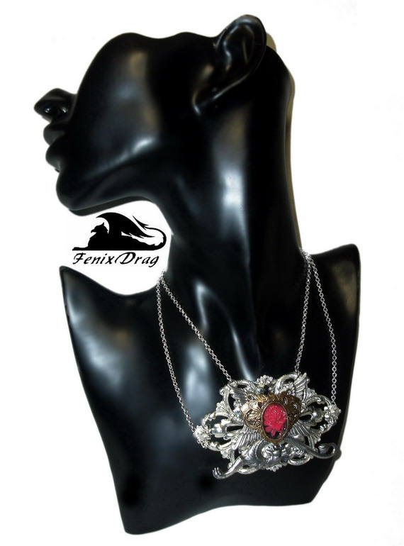 Готический кулон "Оборотень" красная роза и мифический волкСтимпанк, Винтаж, Викторианский стиль
