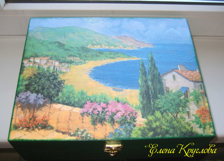 ДекупажЯ бы даже сказала "шкатулище".Во-первых, потому что размеры внушительные - 30х25 см.А во-вторых - это моя первая такая масштабная работа в технике декупаж.есть конечно косяки,например складочка на небе (сколько я с ней билась, 6 салфеток перепортила,пока наклеила,решила больше не мучиться и оставила так),но я все равно работой своей довольна,тем более,что в ней теперь будут храниться мои любимые украшения.Всех прошу под кат.