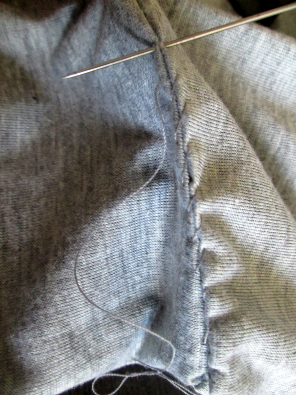 Мы заворачиваем ткань подклада делая складку примерно на 4 см. и сшиваем нитками (можно более аккуратно чем я, я торопилась).