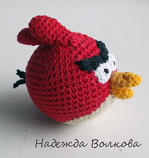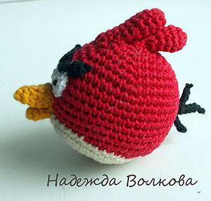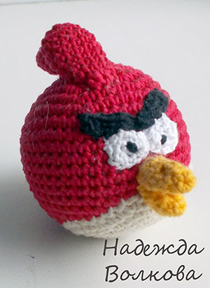 Выпросил у меня сынок связать ему красную злую птичку, долго собиралась, все некогда маме, но вот уличила вечерок и птичка готова. Теперь просит поросенка) ростиком без хохолка 6 см, пряжа хлопок, крючок 2.