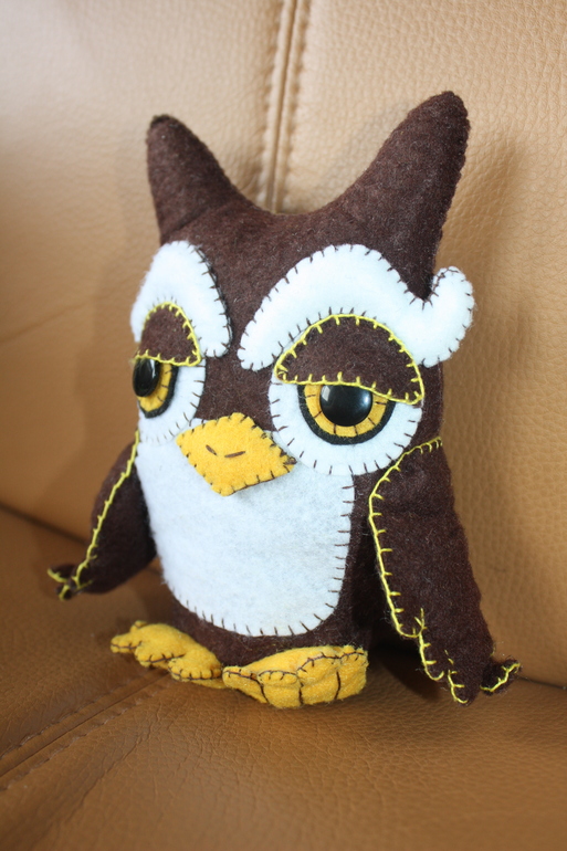 ФетрБыл недавно у меня опыт пошива кого-то из семейства совиных.. может филина, может сычика какого-то ))) Давно еще я нашла фото в инете с этим милым, сурьёзным, сонным созданием и как раз появился повод его сделать. Делала его для благотворительного фестиваля ОТКАЗНИКИ. Ну и намучалась я с ним.. ох. Получился малость кривенький. Выкройку я конечно сама делала на глаз по фото, но вроде все было ровно.. А как сшила так малость криво получилось. Но.. очень мило )))) Под катом еще фото: