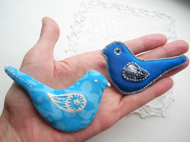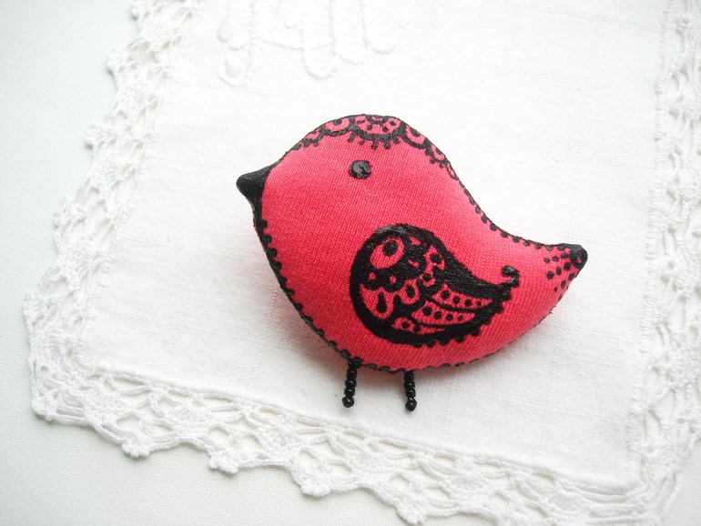 Бижутерия для слингомам. Слингобусы. Грызунки.Попросили меня тут повторить мою давнюю работу - мягкую брошку-птичку, но к моей радости потом решили сделать разных и сразу три:)