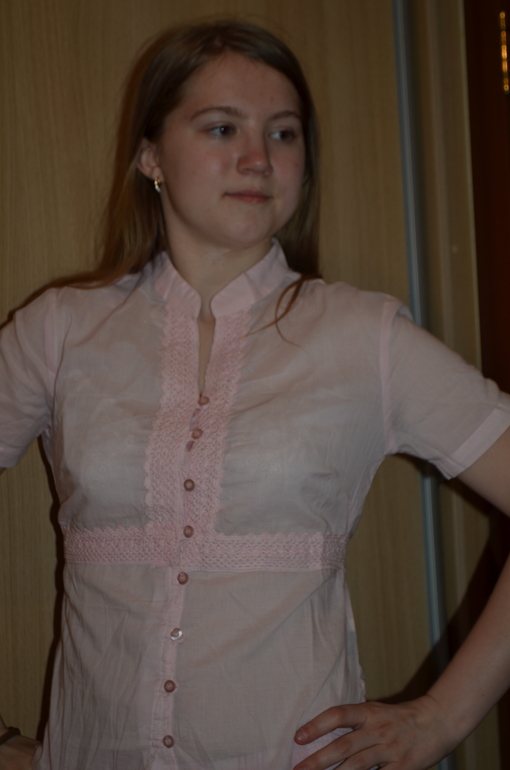 Нежнейшая рубашка для меня, но к огромному сожалению, я в нее не прошла в груди, так что пришлось отдать Полине, она ей села замечательно))) Ну а мне Полина обещала дать футболку поносить)))