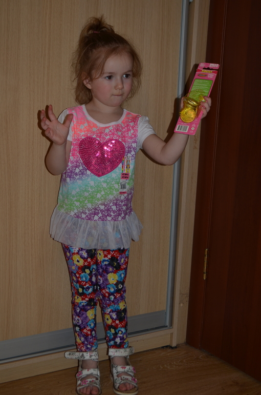 Настенькин наряд: классные футболочка и лосинки! Еле-еле сняла потом, хотела и спать так идти