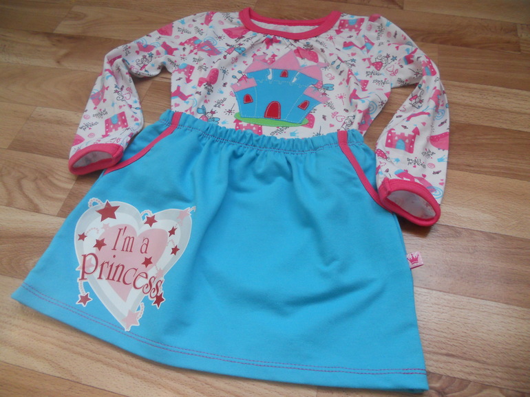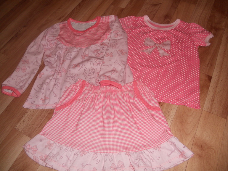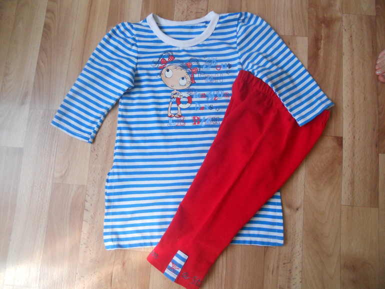 8. Комплект из кулирки с лайкрой. Не было ниток в тон, намучилась с футболкой.