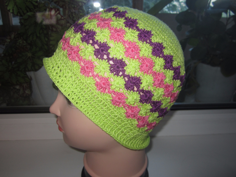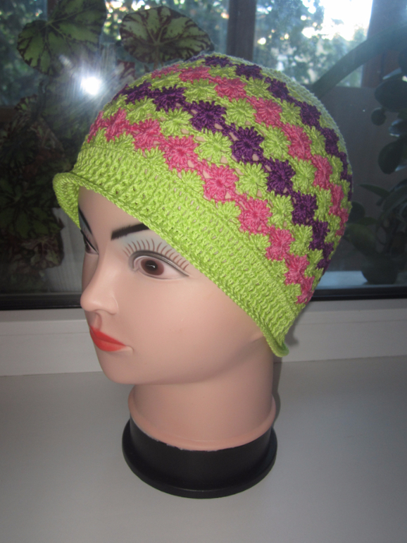 Давно смотрела на эту шапульку, вот есть в ней что-то притягательное, несмотря на простоту, а сегодня наконец-то дошли руки и я ее связала дочке. У нас сапожник без сапог, уже 2 раза вязала Вере шапочки на лето, и обе продала))) Кстати, оказалась довольно трудоемкой, вязалась долго почему-то....