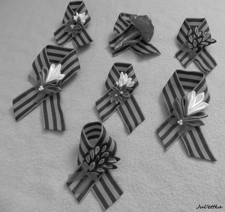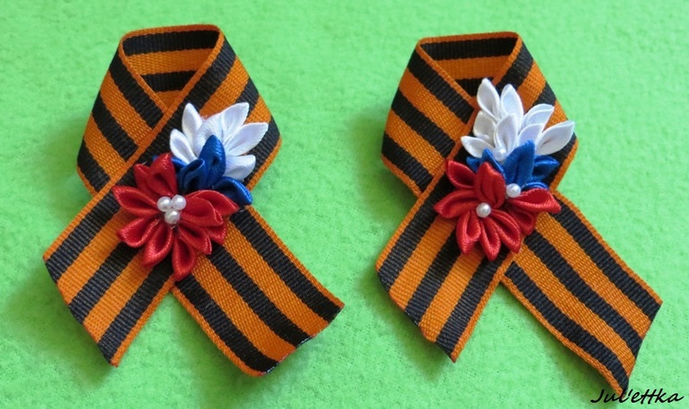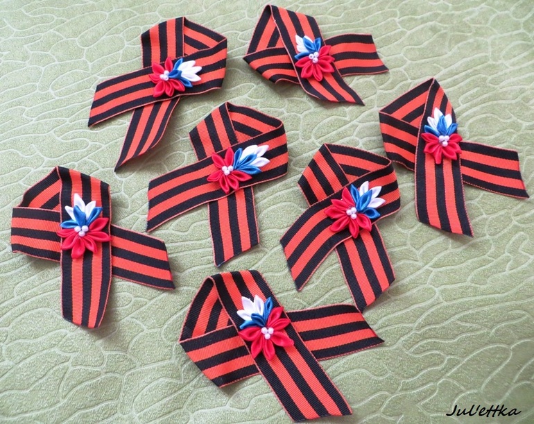 Да...да...мое позднее зажигание.... Праздник уже прошел, но я все таки решила показать какие брошки я к нему готовила! Это мои первые канзаши (делала из просматривая кучу МК в ютубе), процесс надо признать затягивающий))) не обошлось и без косяков (я их все вижу), но мне все равно нравится. Кстати, увидев на ребенке в саду брошку, воспитатели попросили меня сделать еще брошек для всей команды на спартакиаду, так что продолжение под катом:). Использовались ленты 2,5 см, и где крупные лепестки 3,5см.
