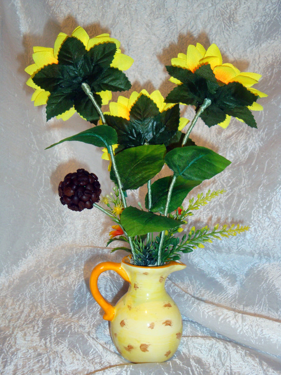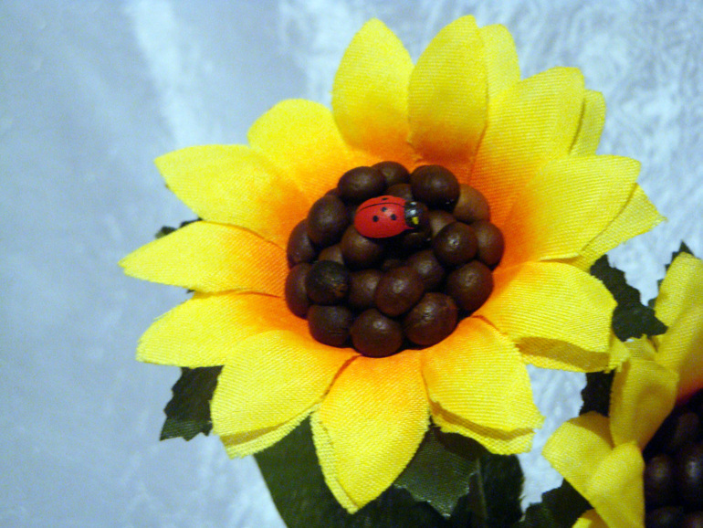 Все как-то не доходят руки разместить работы. Накопилось очень много, но покажу парочку. Итак, хит сезона - комбинирование искусственных цветов с зернами кофе. Интерьерная композиция "Подсолнухи"