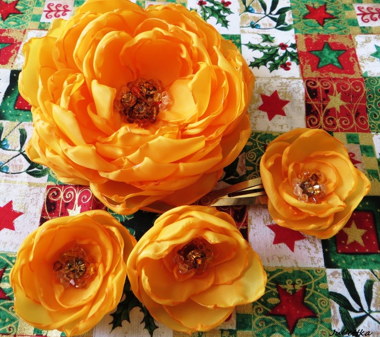 Очень рада показать вам свои цветочки, сделанные из ярко-желтой теплой и позитивной ткани, расшиты сверкающими бусинами. Большой цветочек с крепление брошь-зажим, два маленьких на зажимах-крокодильчиках, и один цветочек на защелкивающемся зажиме.