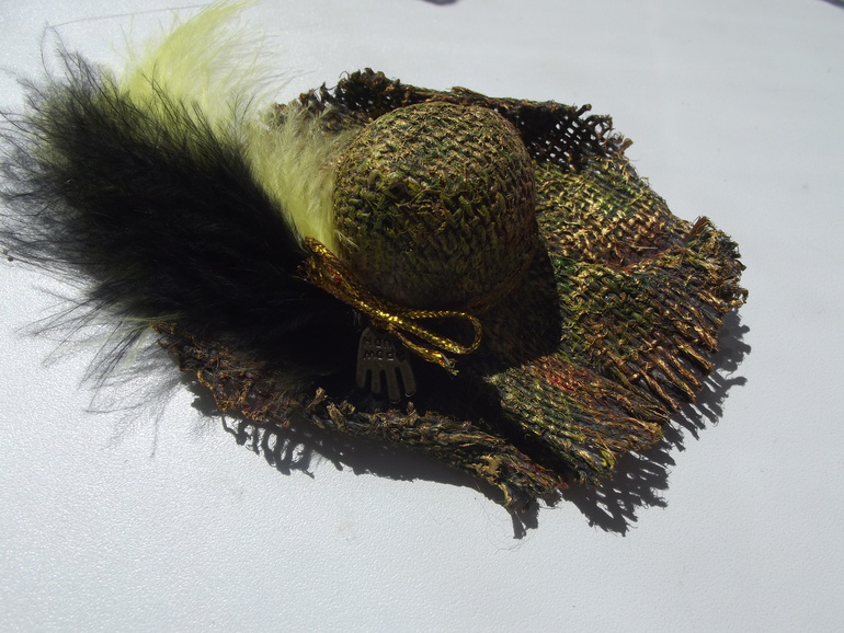Ощущение тебя не подвело, он твердый, загрунтованный. Лапки — из папье маше. Шляпа тоже загрунтована.