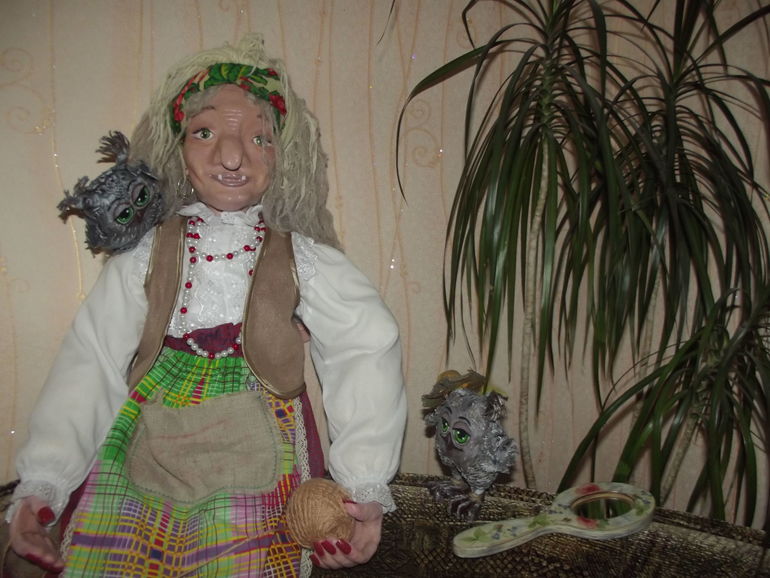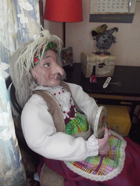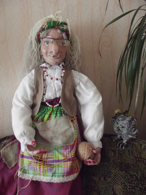 Мы привыкли уже к новой жительнице, а кто приходит к нам то .... пугаются и первое, что произносят: "Ужас!" (Радует, что не все) А ещё с бабулей мы ходили в гости к первой Яге, смешно, но .... с заказчицей мы стали подругами по куклам.
