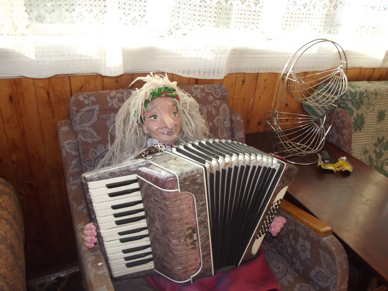 Ну, а свободное время, это святое - свежий воздух, качели как в детстве и баян. Песен то Баба Яга знает очень много!
