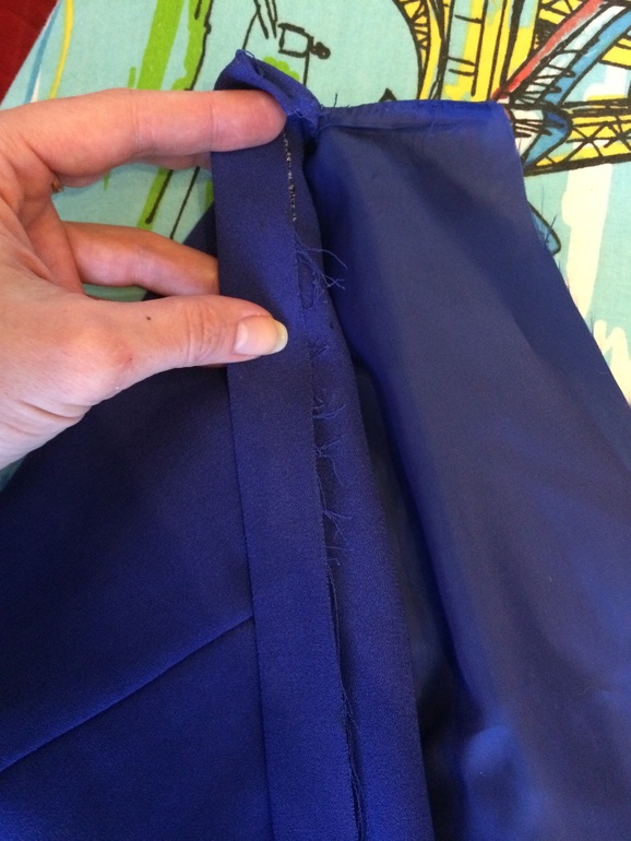 Молнию сзади выпарываем,прокладываем шов по спинке.