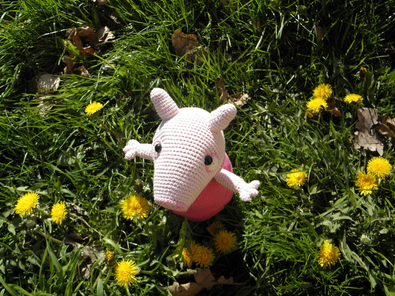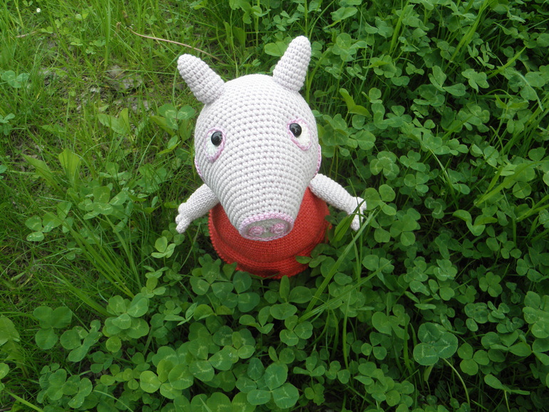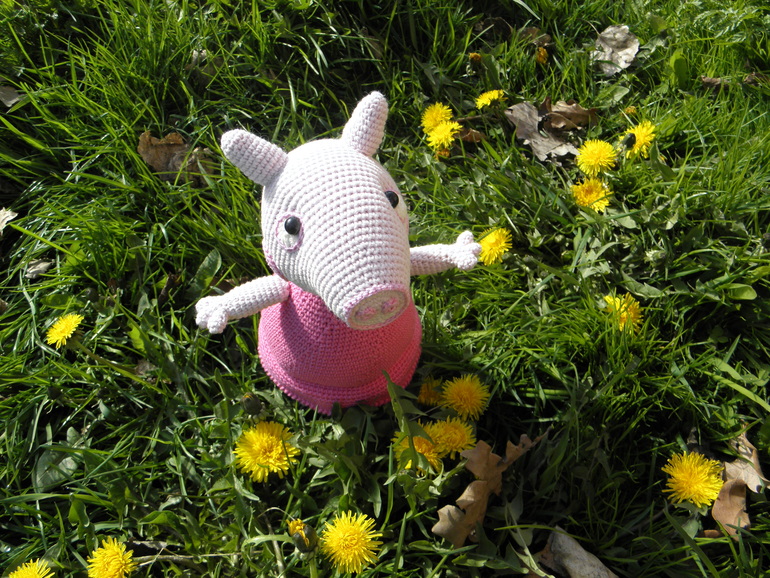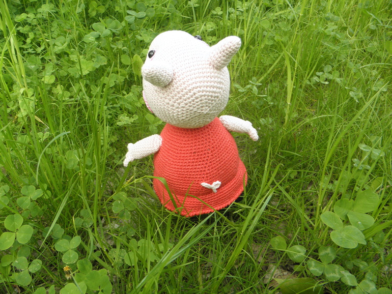 Это самая первая Пеппа,которую я связала для доченьки Васюши,в розовом платьице.