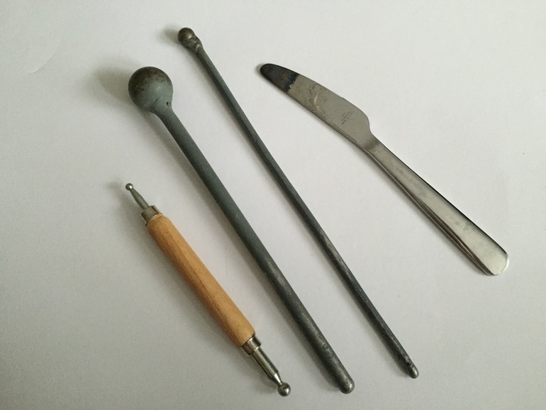 Эти четыре инструмента мои самые используемые, ну и еwе конечно двойной нож и один крючок. Его мне кстати долгое время заменяла вешалка для одежды (верхняя часть), правда остывала быстро.
