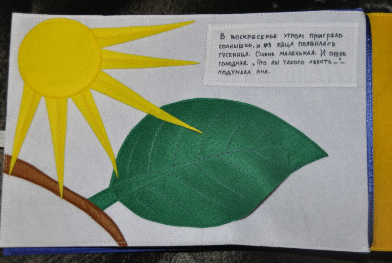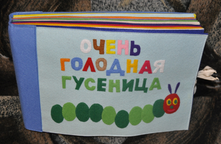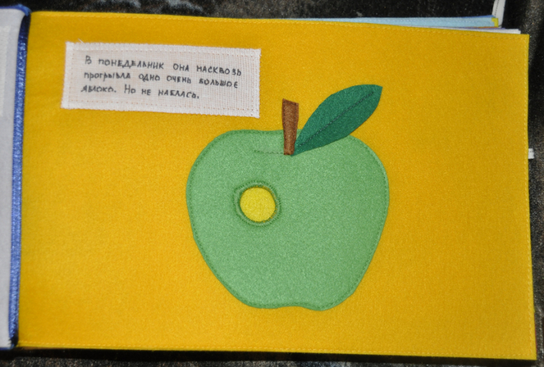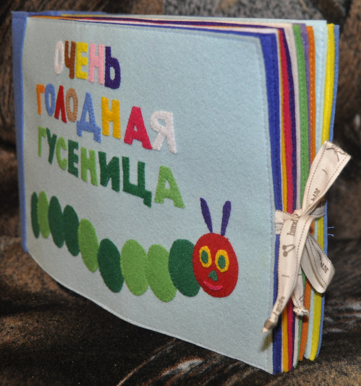 На создание нашей книжки меня сподвигла книжка, сшитая Маргаритой http://www.babyblog.ru/community/post/rukodelie/1997741/4 . Наверное, во многом моя книга похожа на вдохновителя. Даже картинки, взятые из интернета у нас пересекаются, хотя искала я картинки, глядя на оригинальную книжку Э.Карла. Но я решила показать все-таки свою, т.к. ни в одной книжке про голодную гусеницу не видела текста :)) А у меня есть :)