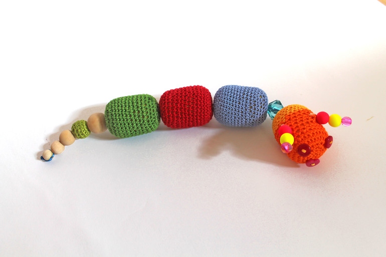 И погр емушка-гусеничка по МК рукодельницы Светлана . Спасибо большое! Правда я неправильно собрала гусеницу, поняла, когда собрала. Нужно было с хвоста, а я начала собирать с головы. Но дети довольны, нравится и старшей и младшей.