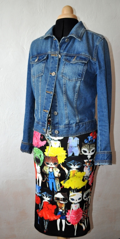 Шитье одежды, выкройки, ремонт одежды, шторы, швейные машины (уже приобретенные)Довольно неожиданная для тридцатилетней дамы вещь, но мне так остро её захотелось, что пришлось шить:) Не помню уже, для чего именно покупала этот трикотаж. Он довольно плотный, эластичный, наверное, хорош для спортивной одежды. У меня вот стал юбкой. Крой проще некуда -- две половинки, широкая резинка на поясе, длина немного ниже колена. Невероятно комфортная для юбки вещь) Я чаще "шью в шкаф" (как писатели пишут "в стол". Но эту вещь ношу и очень люблю)