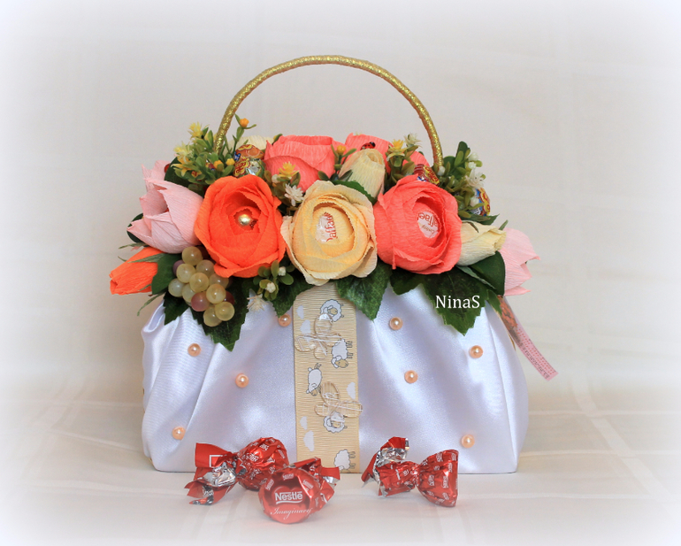 Настя, я сначала очень долго к сумкам присматривалась, а потом откопала в своих залежах кучу всяких тканей, думаю — и зачем они лежат без дела? Надо сумки делать. И как пошло-поехало! Не бойтесь, это очень интересная тема — сумки (фантазии нет предела). Зато у меня страх перед ручными букетами (сделала всего 2)