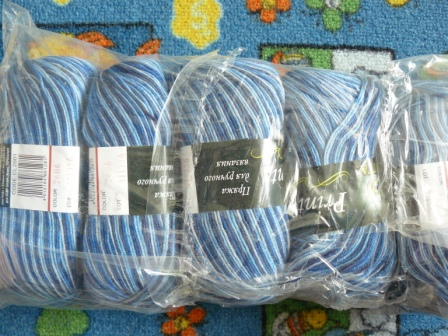 Заодно купила вот такую пряжу - очень тонкая и тоже меланж. Хватит ли мне на небольшую обычную кофточку без горловины. В мотке 100 грамм или 380 метров. Всего 5 мотков.