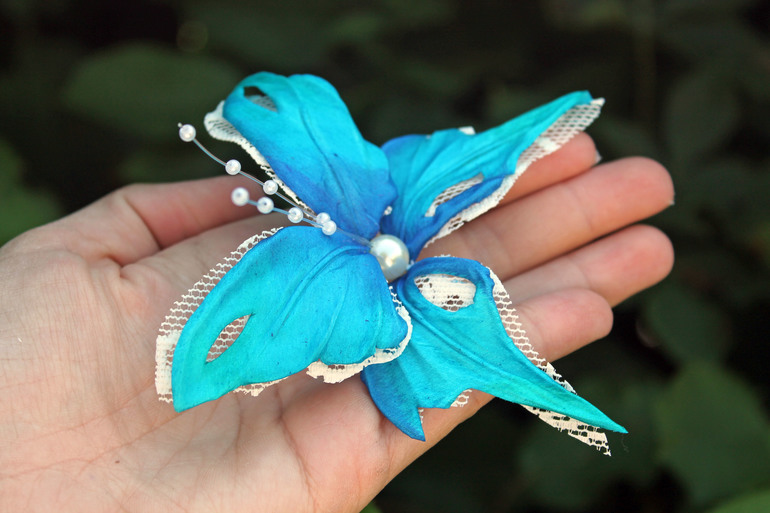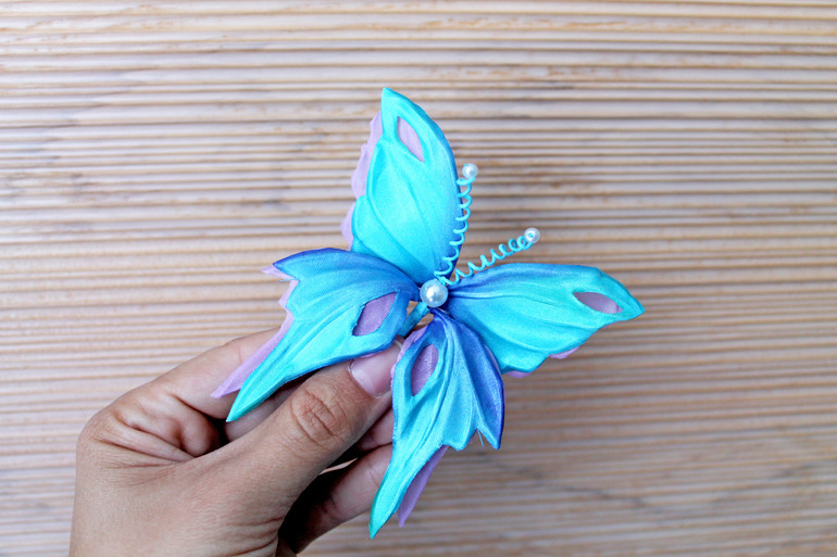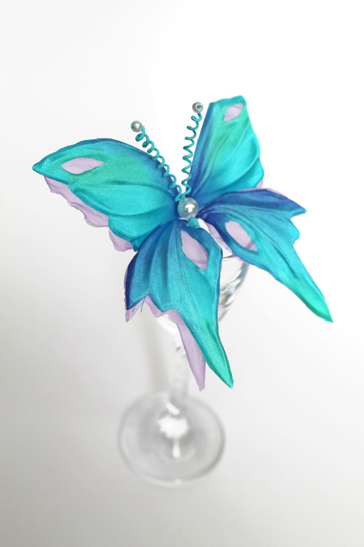 Я опять к вам с бабочками. Одна - повтор на заказ, а другая эксперимент. Обе крашены одними и теми же красками, но одна шелк, другая полиэстр. Разница не только в обработке, но и в покраске огромная. К сожалению не сделала фото, где они рядышком, т.к. заказ первым собрала и срочно надо было отправить.