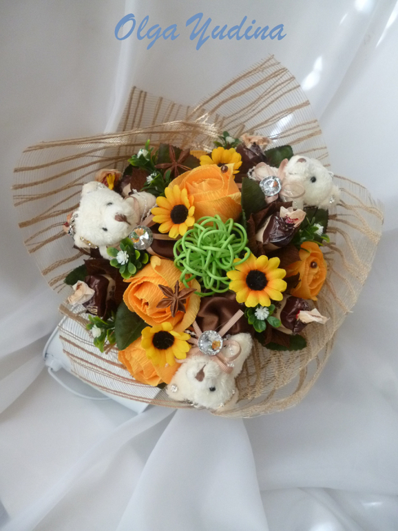 Букеты из конфет. Свитдизайн.Всем привет!!!Заказов мало,но довольствуемся тем,что имеем. Да и две недели были на море с мужем и сынишкой,теперь работаю и как всегда мало времени. Вот то,что не показывала: (много фото)