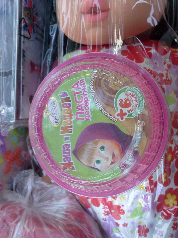 Подарочки для Настюши; футболочка со смайликами, огромная кукла размером с нашу всю комнату))) наборчик для творчества