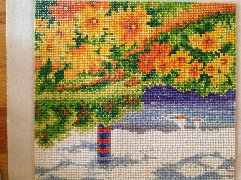 Это моя первая работа в алмазной мозаике, ее мне подарили и очень удачно. Вся работа заняла около 1,5-2 месяцев, с учетом что я ее выполняла, когда дочка спала! Очень увлекательно и оторваться просто невозможно! Жаль что фото не может передать всей красоты, но получилось потрясающе!!!