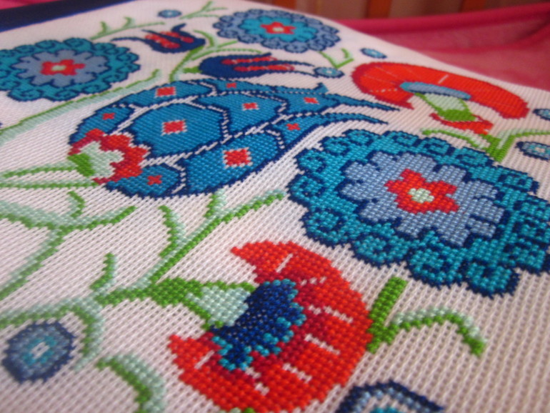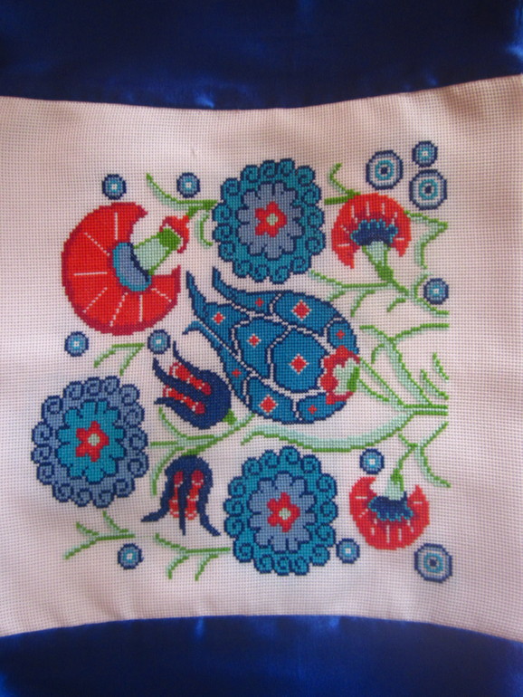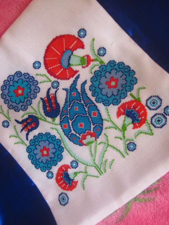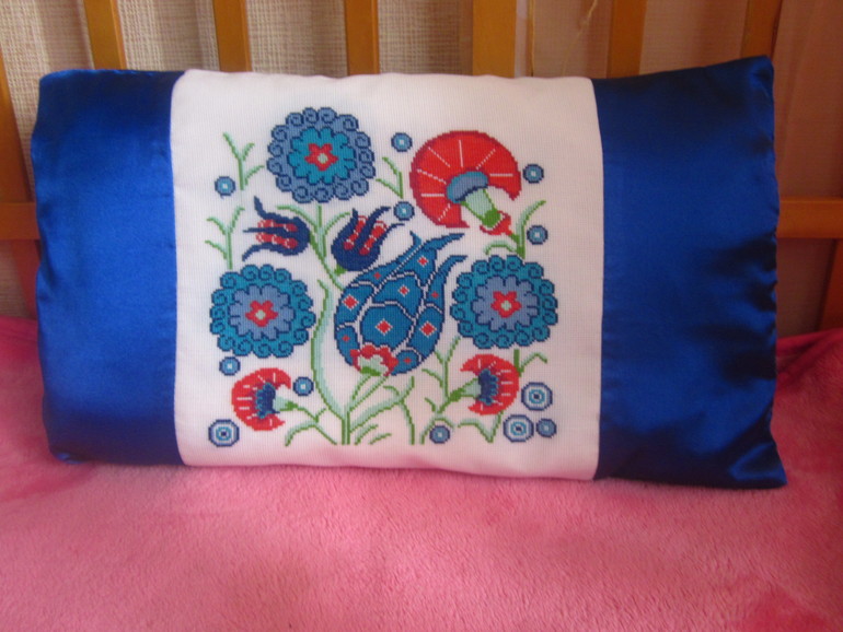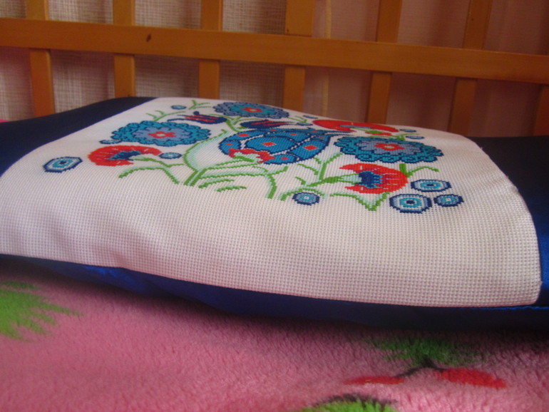 Очень красивая подушечка))) цветы как сказочные — выдуманные — интересные))) аккуратненько и здорово!!!