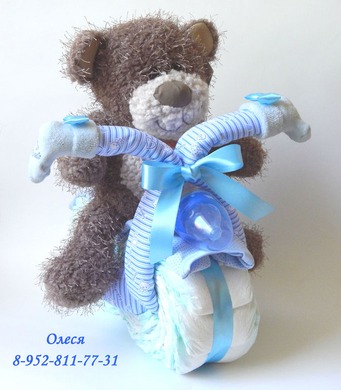 Мои новые тортики из подгузников и мотоцикл с медведем :-)