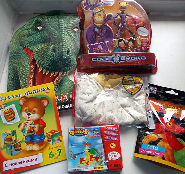 Это для Ромули книжки и игрушки! И про пузожителя нашего Леночка не забыла! Вот какой костюмчик хлопковый.