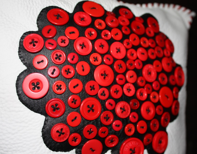 Меняю подушку из натуральной кожи с алым пуговичным деревцем. Хотелось бы развивашку для сына или вязанный кардиган для девочки 3 лет. Всем удачного лета ))))