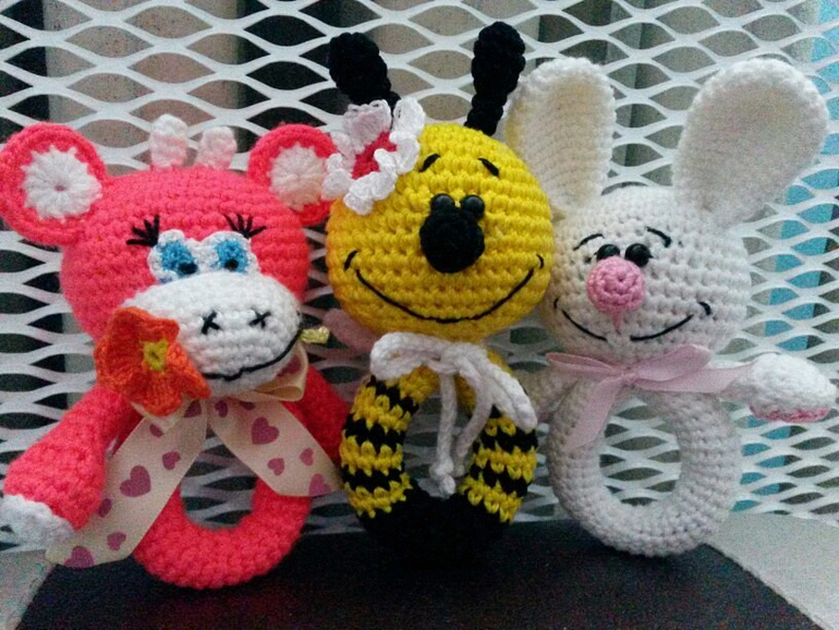 Милые погремушечки связаны по мастер-классу Надежды Ли, вот кудесница она, вязать такую красоту одно удовольствие.