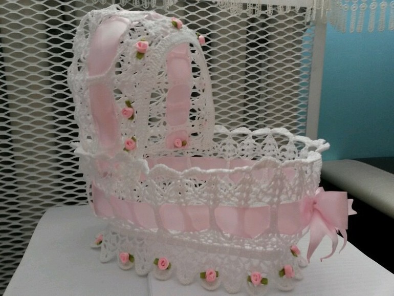 ДД! Я не вязала такую колясочку, но как-то делала гнездо для игр с младшим путем наматывания веревки на воздушный шарик. Так вот для закрепления формы намотанной веревки я использовала очень концентрированный сахарный сироп. Скрепило идеально и долго держалось уже после сдувания шарика.