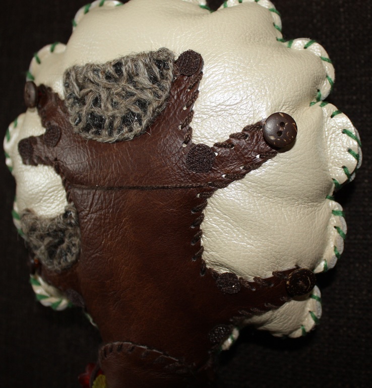 Сотворилось у меня для обмена с Катюшей такое замечательное развивающее дерево из кожи. Материал ну очень долговечный и детишкам будет сложно с ним что-то сделать )))) Состоит оно из двух частей. На одной ствол дерева с развивающими штучками, а на другой стороне просто пришиты пуговички + шнуровка. Внутри дерево набито холлофайбером. Размер примерно 30 см. За деталями прошу под кат.... (много фото)