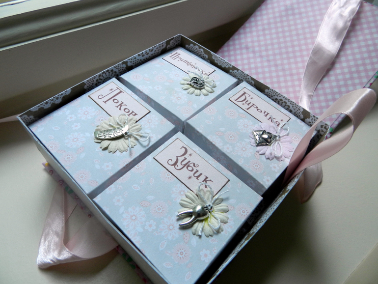 СкрапбукингДобрый день!Так давно я не делала эти сокровищницы)) А сегодня хочу показать девочковую. Сделала ее для ББ-подружки. Она малюська-всего 4 отделения. Смотрите))