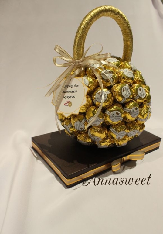 Был единственный заказ, да еще и на мое день рождения, хотела отказать,но просила хорошая знакомая. На удивление сделала очень быстро, а я жуткая капуша)) Были проблемы с конфетами, купила, а их оказалось мало, сутки искала, в итоге послала мужа ночью искать и он слава Богу нашел, фух....