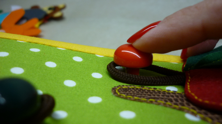 А вот с петлей-резинкой маленьким пальчикам нужно проявить некоторое упорство и ловкость). К сове не так просто попасть в дупло)