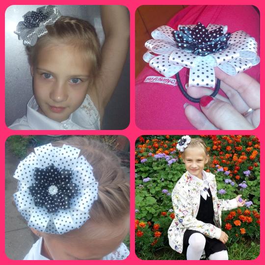 Всем здравствуйте! Покажу я Вам своё творение))) Сделала я старшей дочке на первое сентября бантик! Ну не нашла я в магазинах то,что понравится. А бантиками заняться давно хотела,поэтому и материал дома нашелся. Поискала в интернете МК и вот что получилось.