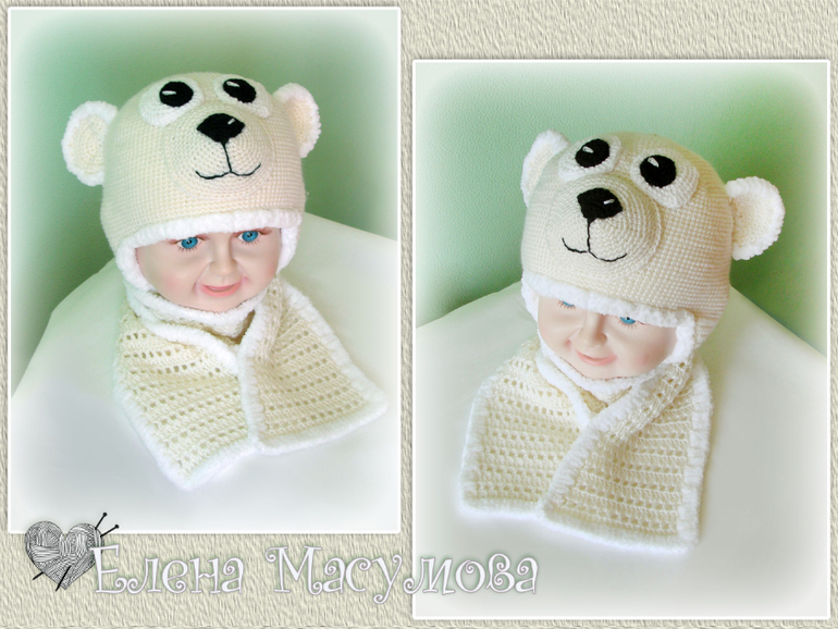 13. Шапочка и шарф "Мишутка". Пряжа Сапфир и Софти Ализе