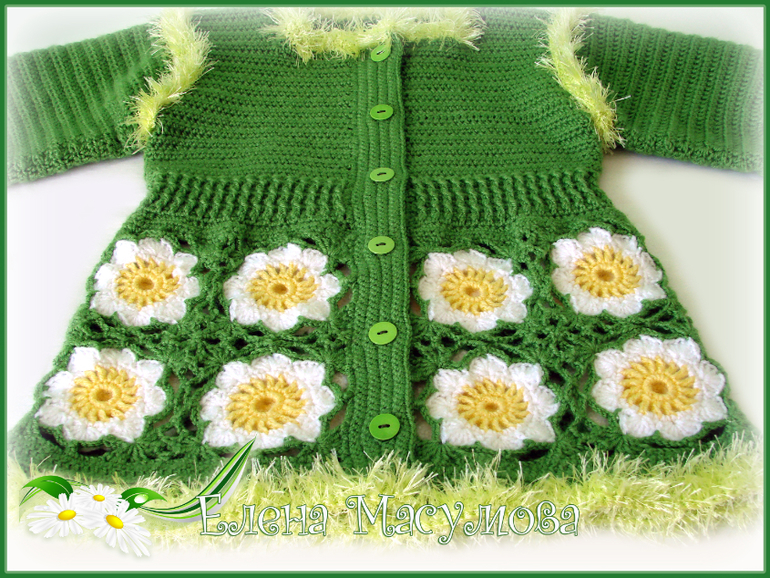 3. Кофточка-пальтишко на девочку пяти лет по мотивам работы Светланы Маслиховой. Пряжа Нако Бамбино.
