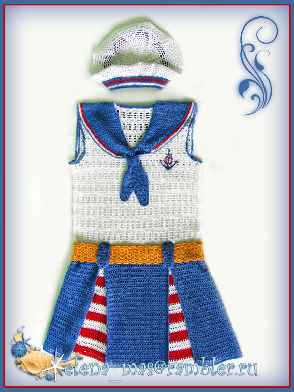 5. Комплект "Морячка", на девочку 10 лет. Пряжа Сосо.
