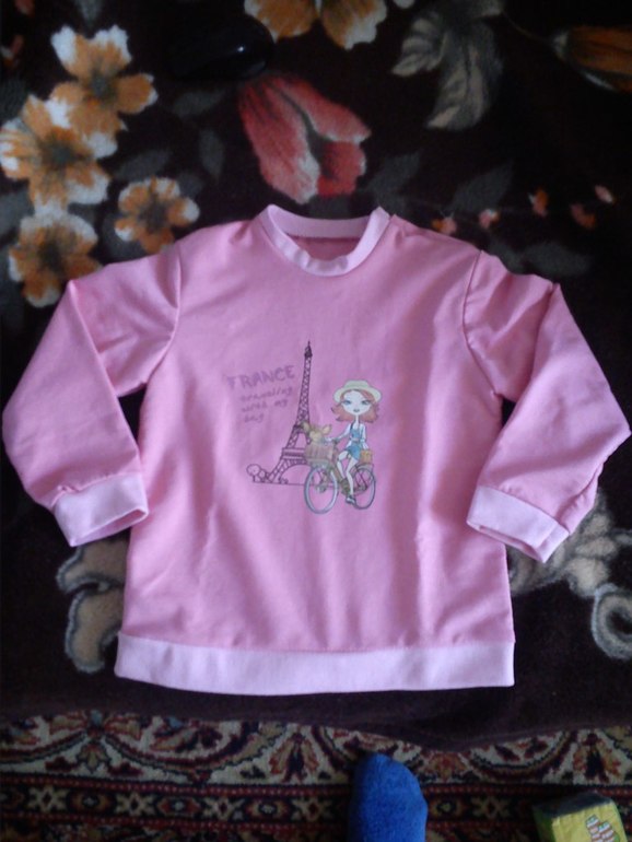 Шитье одежды, выкройки, ремонт одежды, шторы, швейные машины (уже приобретенные)Продолжаю осваивать оверлок. Вот такой джемперок сшился доченьке из футера 2-хнитки с лайкрой и рибаны с лайкрой: